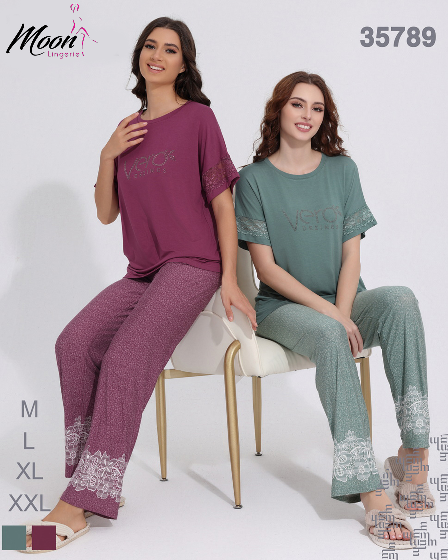 هاد الموديل مميز ومريح، مكون من تيشيرت قصير بأكمام مزيّنة بلمسة دانتيل أنيقة، مع بنطلون واسع مزخرف بنقشة ناعمة وتطريز دانتيل على الأطراف لإطلالة أنثوية جذّابة. متوفر بلونين أنيقين (أخضر زيتي – عنابي) ليمنحك مزيج مثالي من الراحة والجمال.