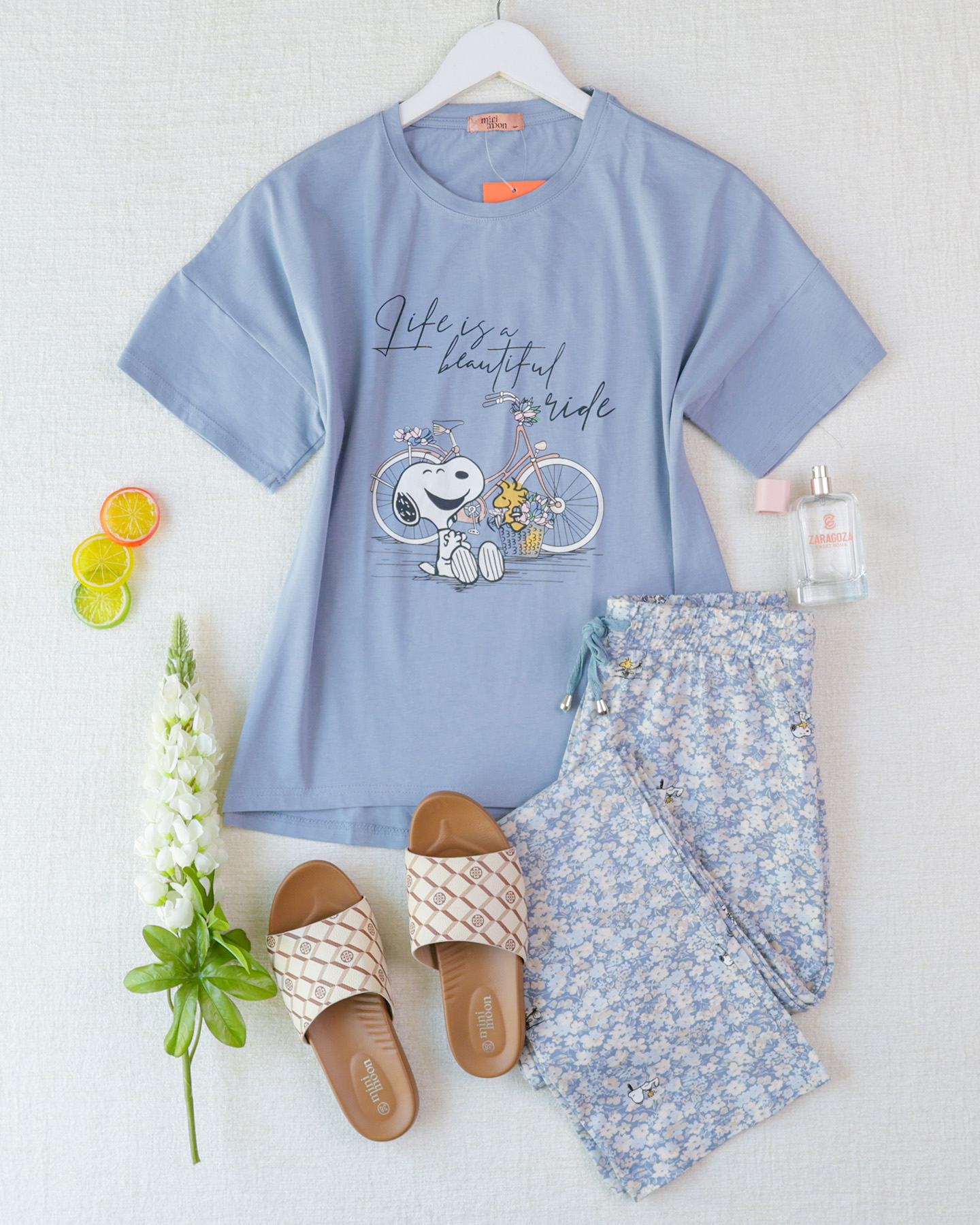 أضيفي لمسة من المرح والأناقة إلى إطلالتك البيتية مع هذه البجامة الصيفية المريحة ، المصممة لتجمع بين الخامة الناعمة والتصميم العصري الحيوي.