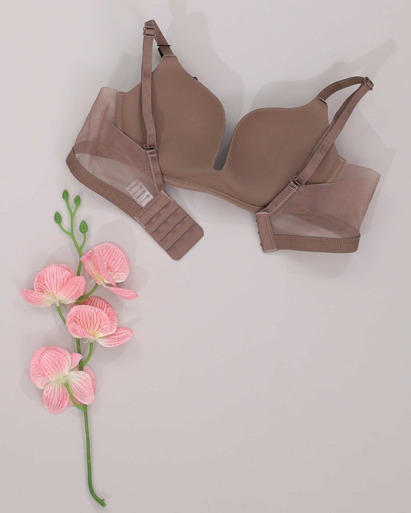 حمالة صدر بخامة ناعمة بخطوط أنيقة وجوانب شبكية شفافة تضيف لمسة أنثوية، مع فيونكة صغيرة في الأمام لمظهر جذاب.